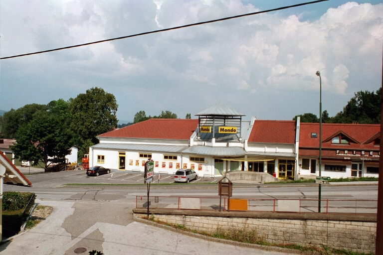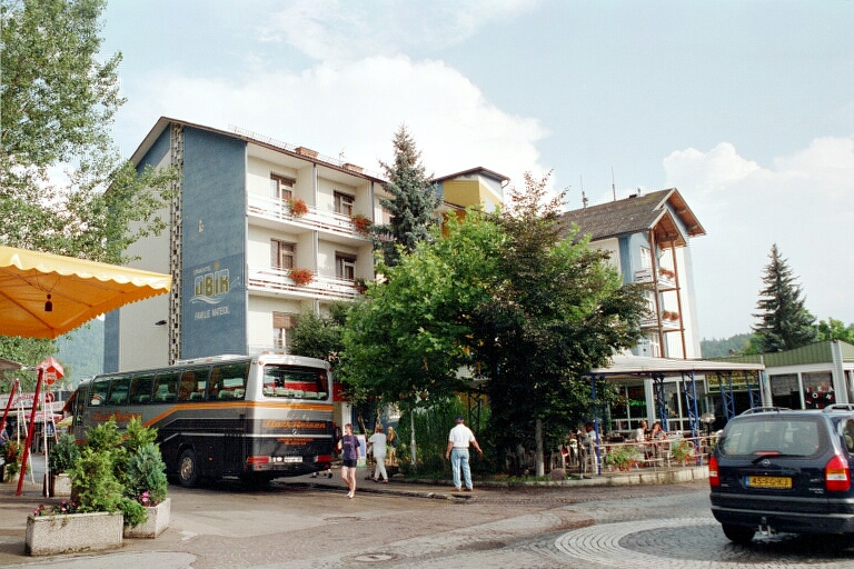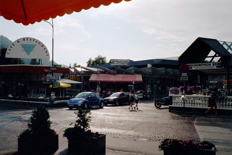 ![]() 350.54 Kb Hier sind wir auf der Hauptverkehrsader. Im Hintergrund Hotel Obir. |